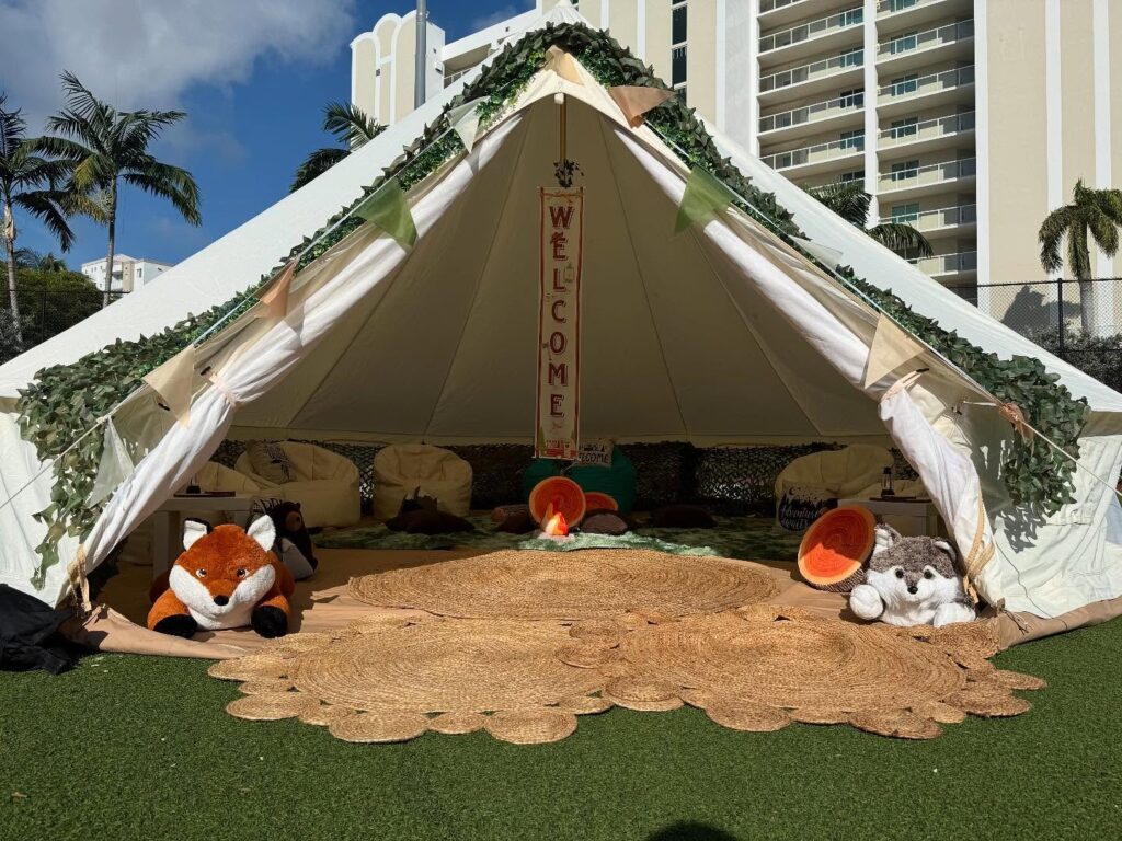 Slumberr goes above and beyond to ensure that your glamping experience is nothing short of extraordinary. From providing high-end disposable dishware to themed rugs and decor that match your party’s vibe, every detail is carefully considered. Your guests will feel like they’ve been transported to a five-star resort, all within the comfort of your own backyard.